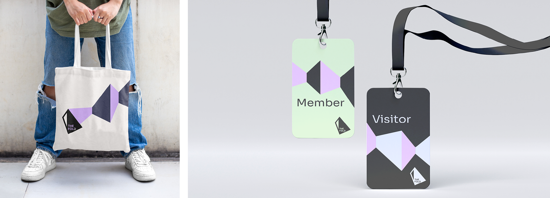 The resulting identity includes a bold angular logo marque which taps into the core of the brand principles. The type is enclosed and enveloped within the graphic form (which reflects the inclusivity of the space). Our logo form also has a clear 'window', reflecting the open-ness and the opportunity to engage with new perspectives, skills and creative practices within the community.